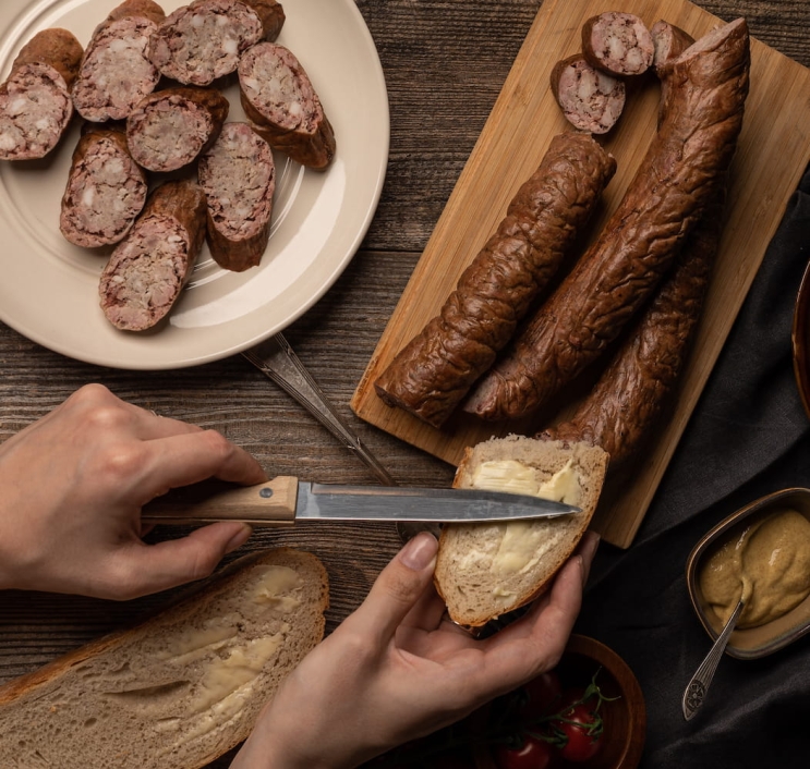 Każdy z produktów został przygotowany z mięsa pochodzącego z małych, lokalnych gospodarstw, bez antybiotyków i sztucznych dodatków. Wszystkie wędliny są wędzone naturalnym dymem z drewna bukowego i sparzone, dzięki czemu są gotowe do spożycia od razu po rozpakowaniu.